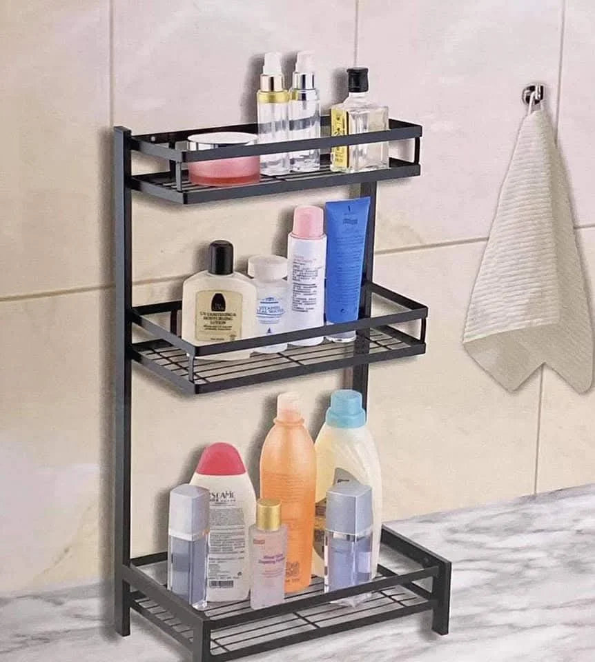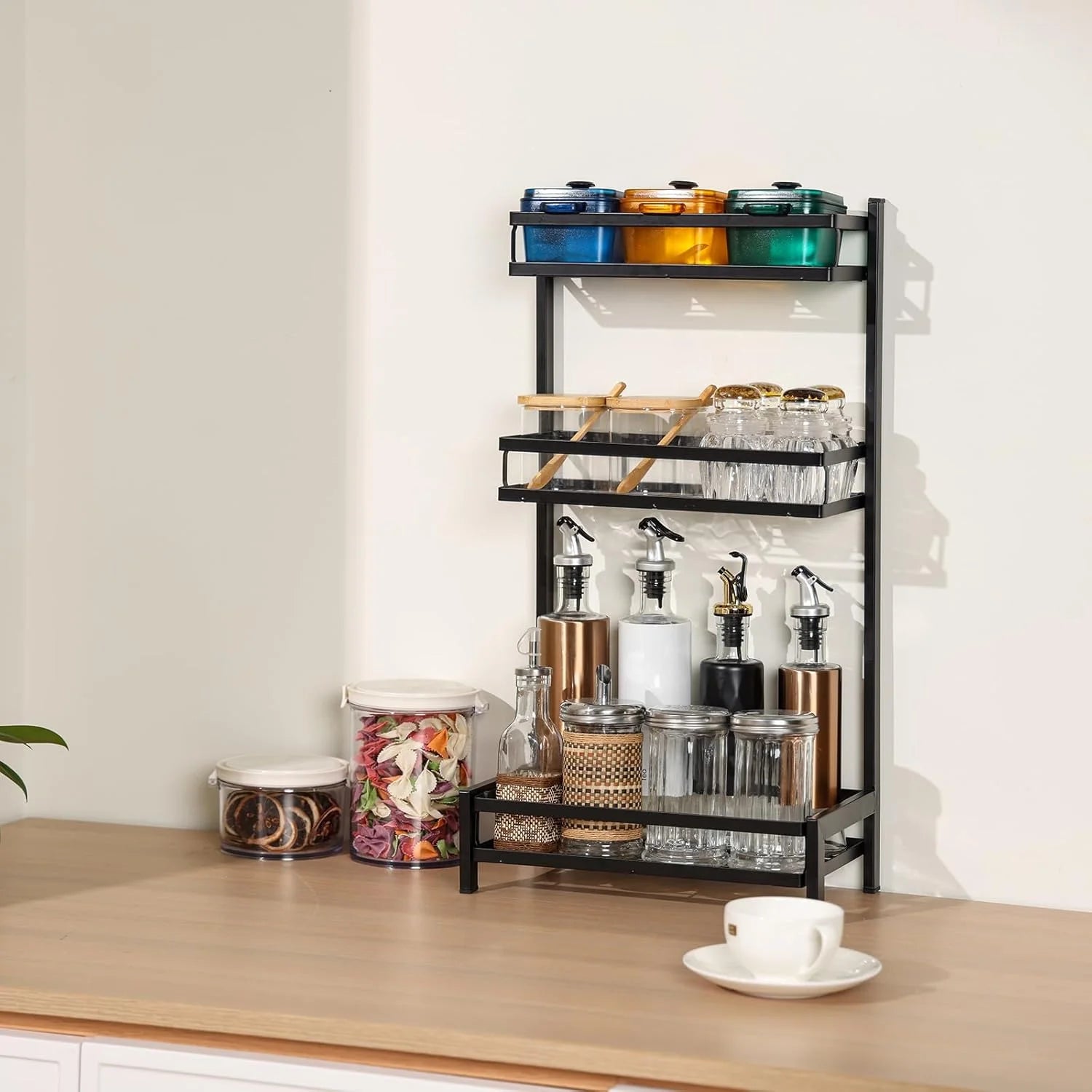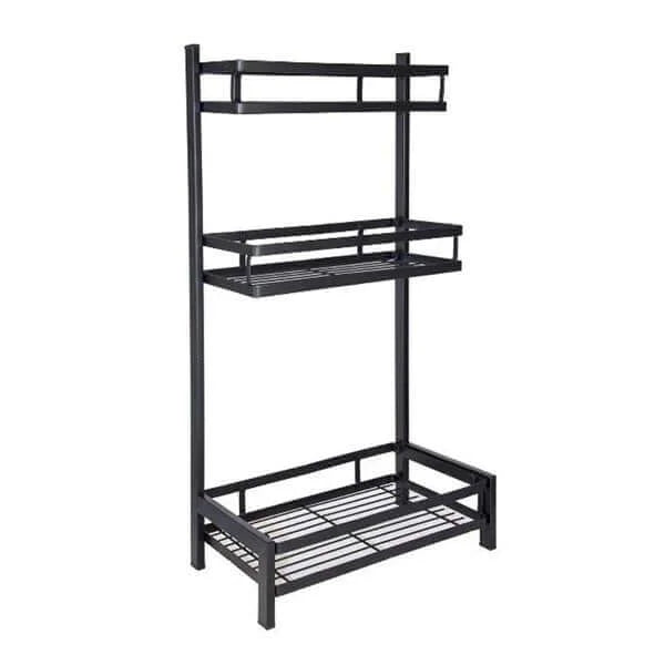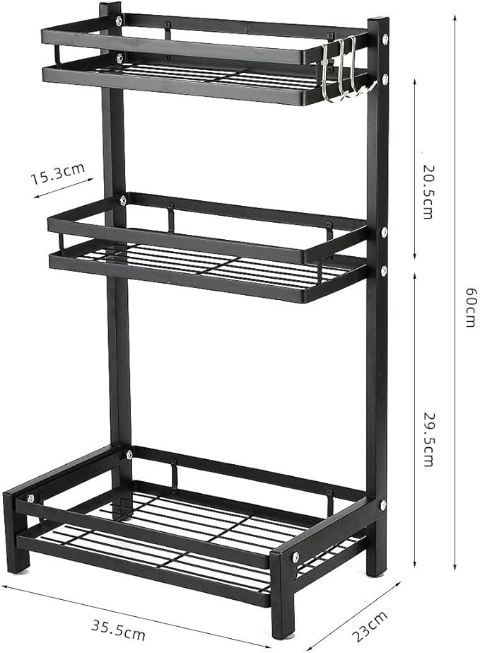 - رف تخزين توابل 3 طبقات لرخامة المطبخ متعدد الطبقات للزيت والملح والصوص والخل والسكاكين، اسود، معدن
