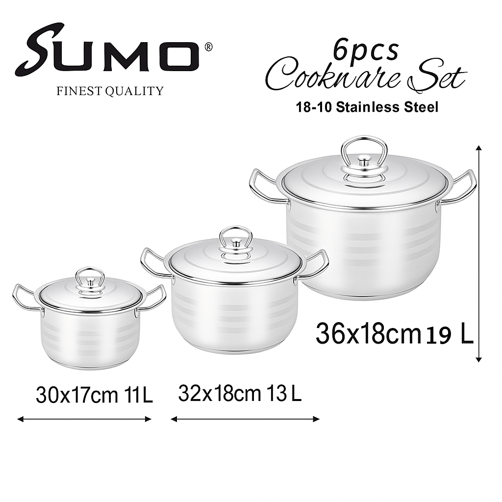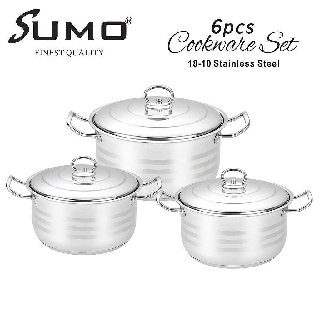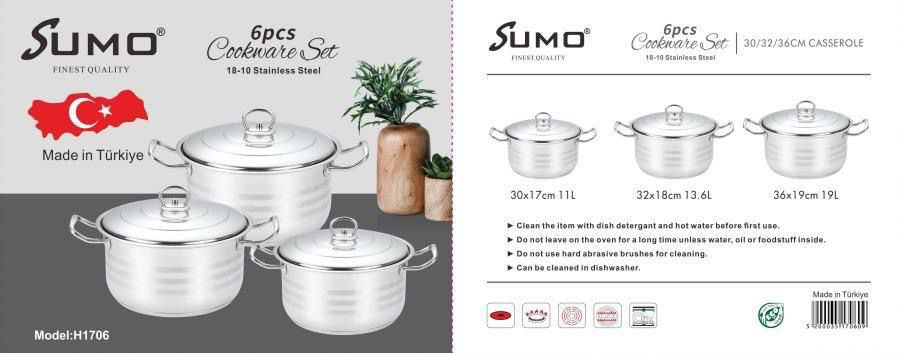 - طقم أواني طهي سومو - جودة تركية فاخرة 🇹🇷 ٦ قطع | ستانلس ستيل ١٨/١٠ | الموديل: H1706