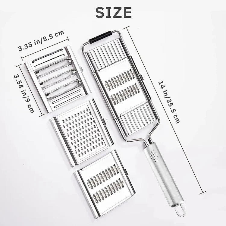 - هذه الأداة متعددة الاستخدامات تشمل المبشرة، والتقطيع إلى شرائح رفيعة. لتبشير الجزر، والخيار، والبصل، والثوم، والطماطم، والبطاطس، والجبن، والمزيد