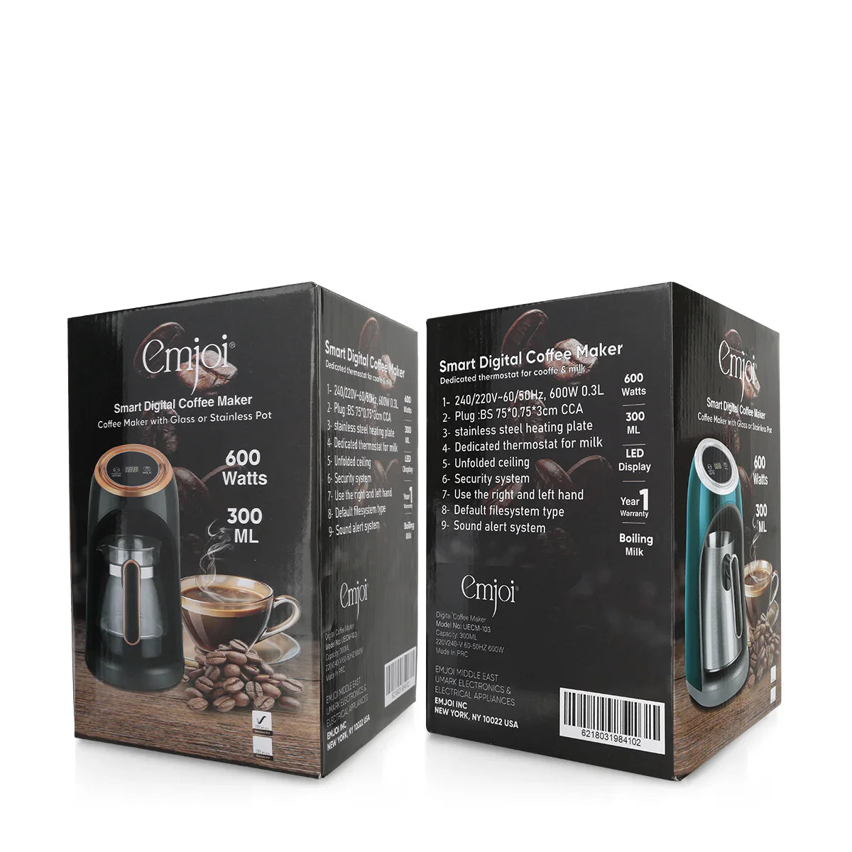 - ماكينة تحضير القهوة التركية الزجاجية الرقمية من إمجوي بسعة 300 مل حتى 4 أكواب مع منظم حرارة مخصص للقهوة والحليب ونظام تنبيه صوتي