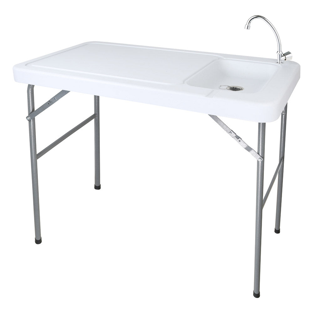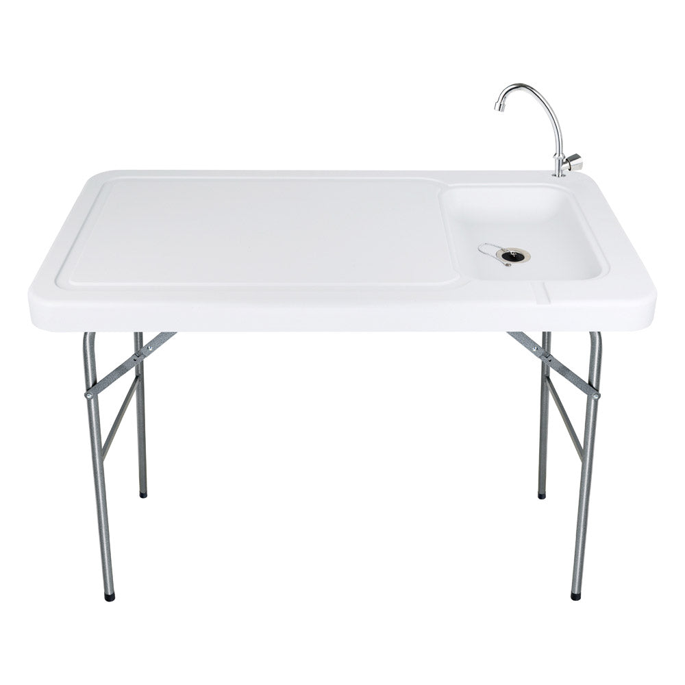 - طاولة مع حوض، طاولة تخييم، لون أبيض، مقاس 61*117*86 سم