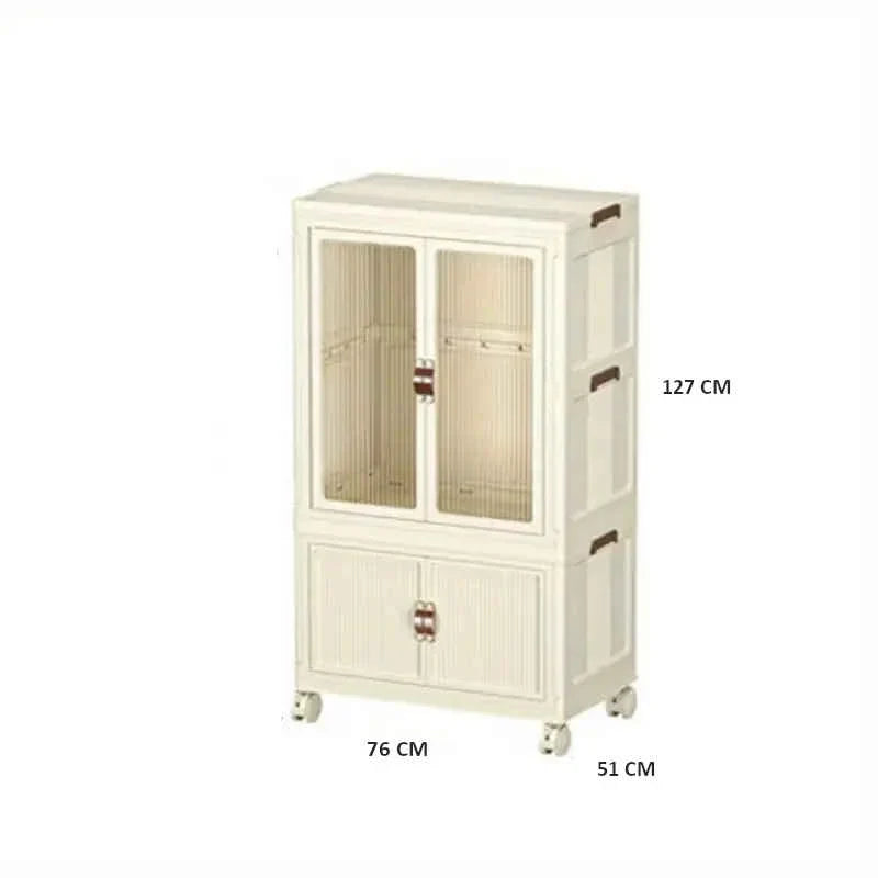 - كبت تخزين بغطاء شفاف وعجلات مقاس 76 × 51 × 127