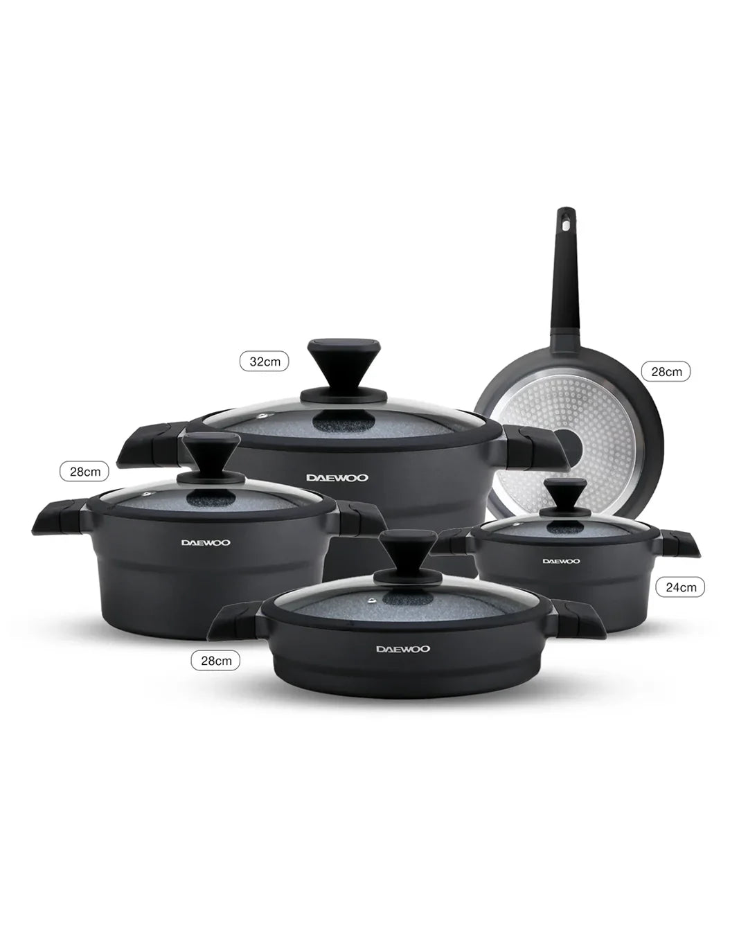 Whether you're a home cook or a seasoned chef, the Daewoo X Series 9-Piece Granite Cooking Set is designed to elevate your culinary creations. Its versatility, durability, and stylish design make it the perfect cookware set for any kitchen. From frying and sautéing to simmering and baking, this set is your all-in-one solution for creating delicious, professionally-cooked meals at home.