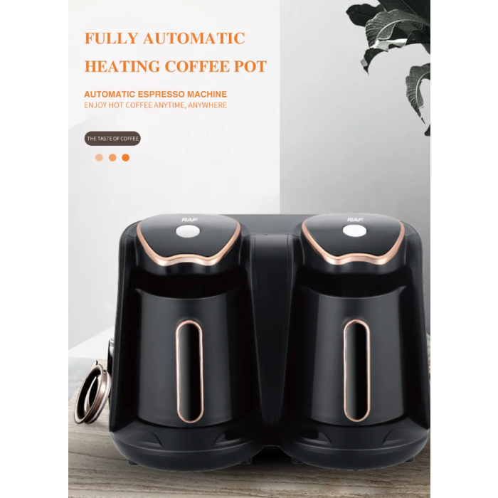 تتيح لك ماكينة تحضير القهوة التركية المحمولة من RAF الاستمتاع بكوب ساخن من القهوة في أي وقت ترغب فيه. مزودة بنظام تسخين متطور، تأخذ هذه الإبريق عملية التحضير إلى مستوى جديد من الراحة. مع قدراتها على التسخين السريع، يمكنك بسرعة وكفاءة إحضار الماء إلى درجة الحرارة المثالية لتحضير قهوتك المفضلة