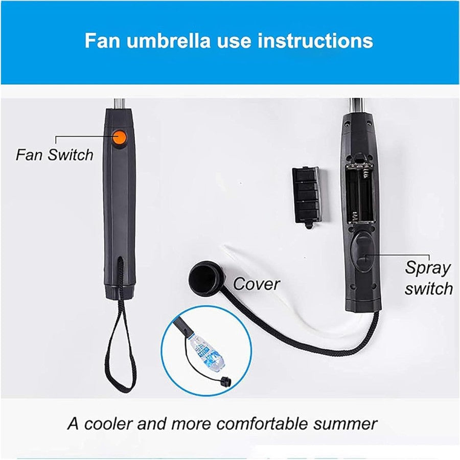 مظلة متعددة الوظائف: مظلة جديدة متعددة الوظائف، مع وظائف لا تمتلكها المظلات العادية، مع رش ومروحة، لذا ستشعر أيضًا بالبرودة في الطقس الحار.